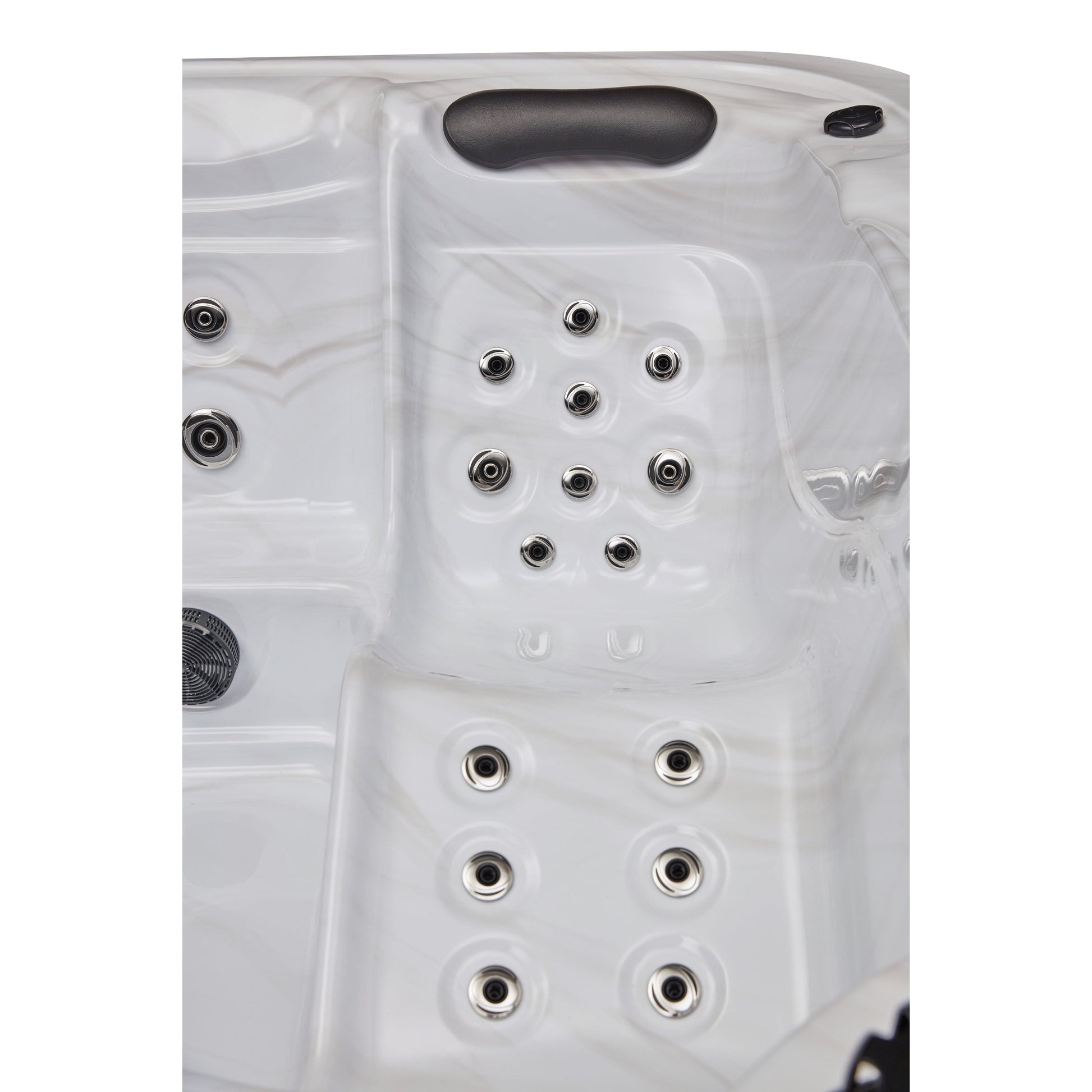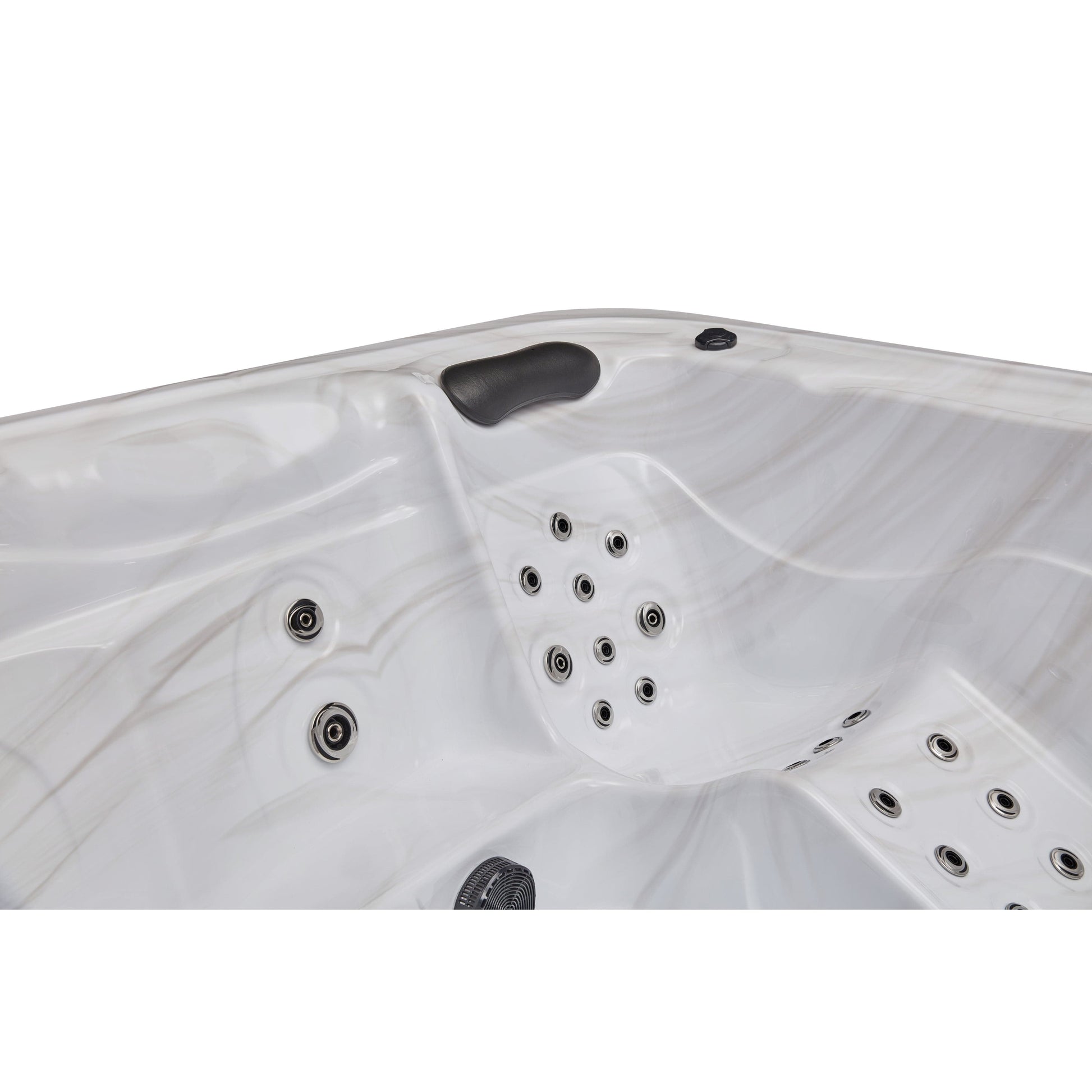 The Estes 5-Person home spa with a cloud grey interior features two lounge seating options and three spacious bucket seats. Includes 52 powerful massage jets providing back, leg, and foot massage for a complete hydra-therapy experience. The multiple seating options of the Estes allow you to relax and enjoy the spa with friends and family without feeling crowded. The built-in cushioned neck pillows provide an extra layer of comfort and the LED mood lighting helps you relax and de-stress the day away. The multi-speed pump provides ample power to the adjustable jets in high mode while low mode serves as a filtration pump for improved water clarity.